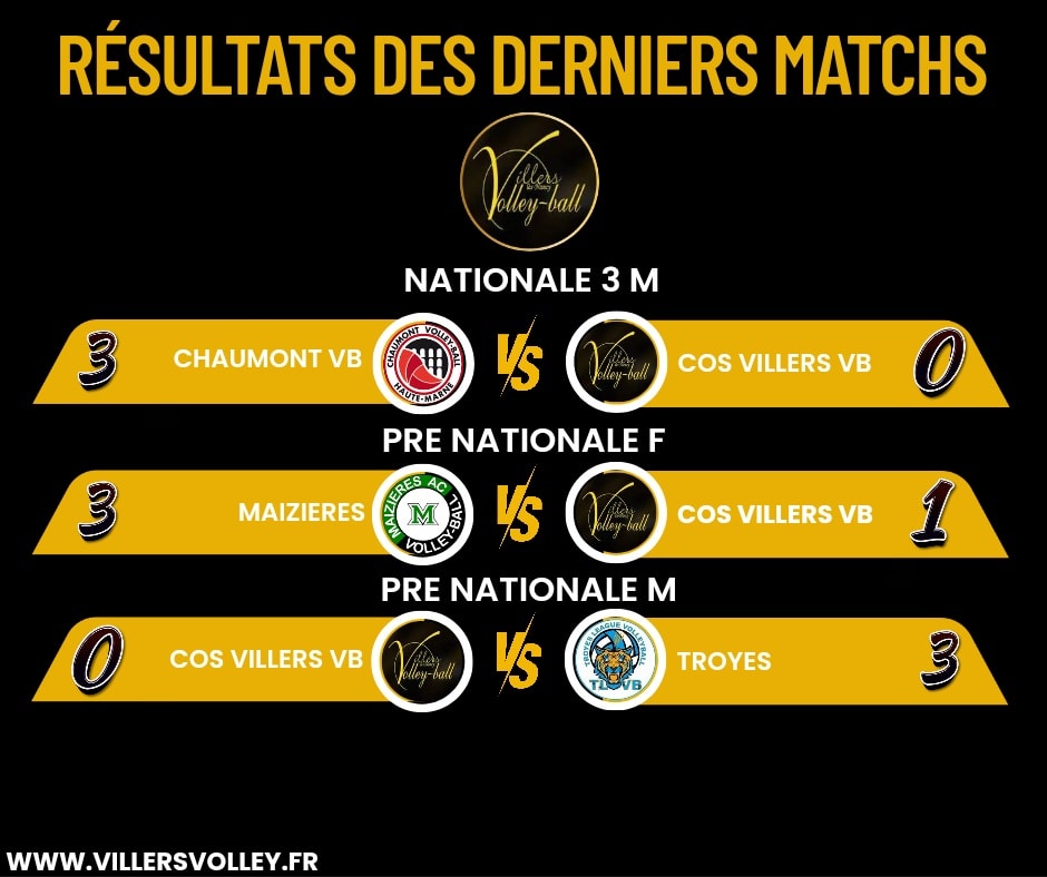 ❌ Nationale 3 M : Chaumont VB 3 – 0 COS Villers VB