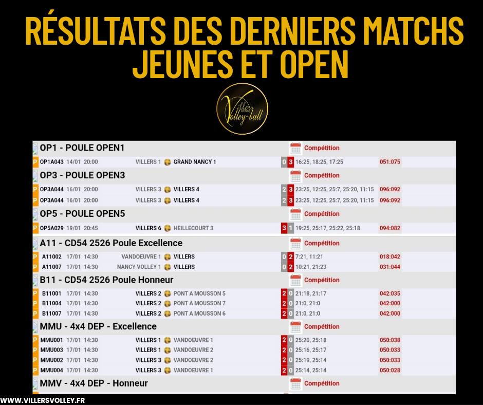 Open & Jeunes : Félicitations à nos équipes Villers 2 (M11) qui signent trois victoires consécutives 2-0 contre Pont-à-Mousson, ainsi qu’à nos équipes MMU pour leur carton plein face à Vandoeuvre !
